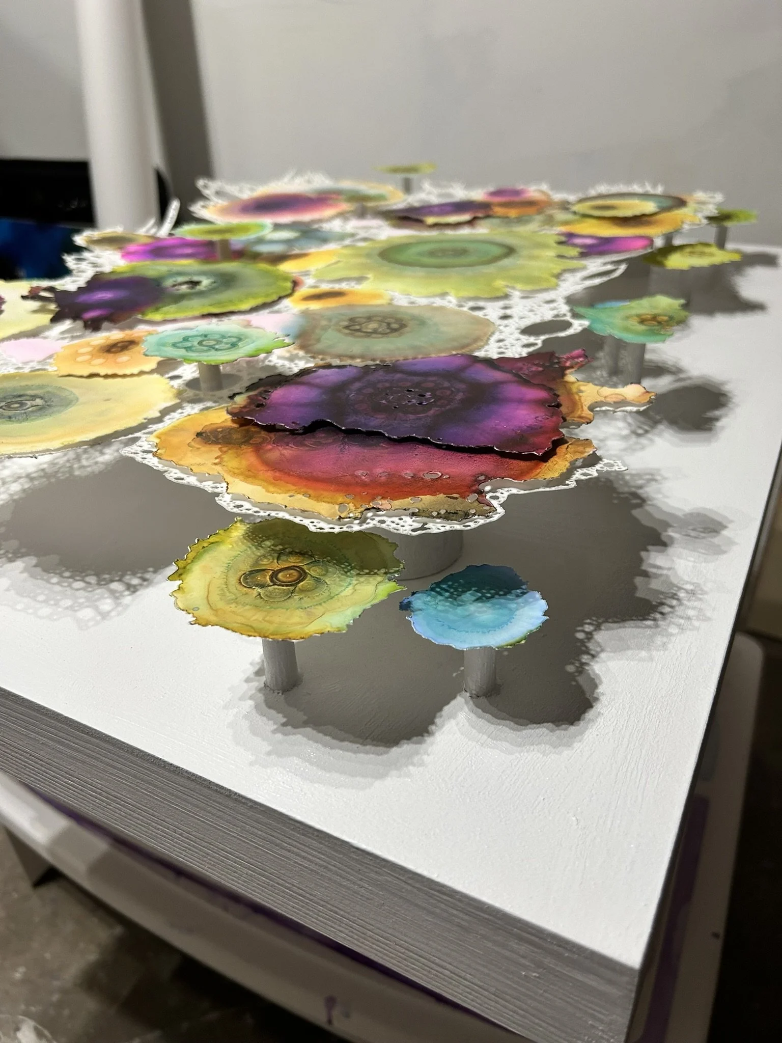Ink dripped and painted on synthetic paper - Hand soldered and mounted on panel in 3D sculpture, 2024