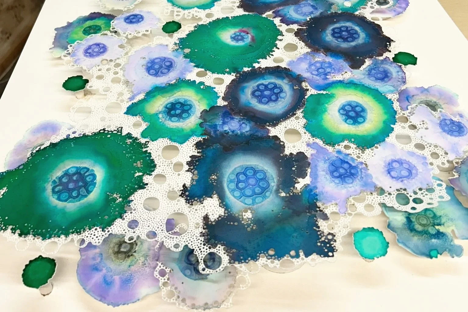 Ink dripped and painted on synthetic paper - Hand soldered and mounted on panel in 3D sculpture, 2025
