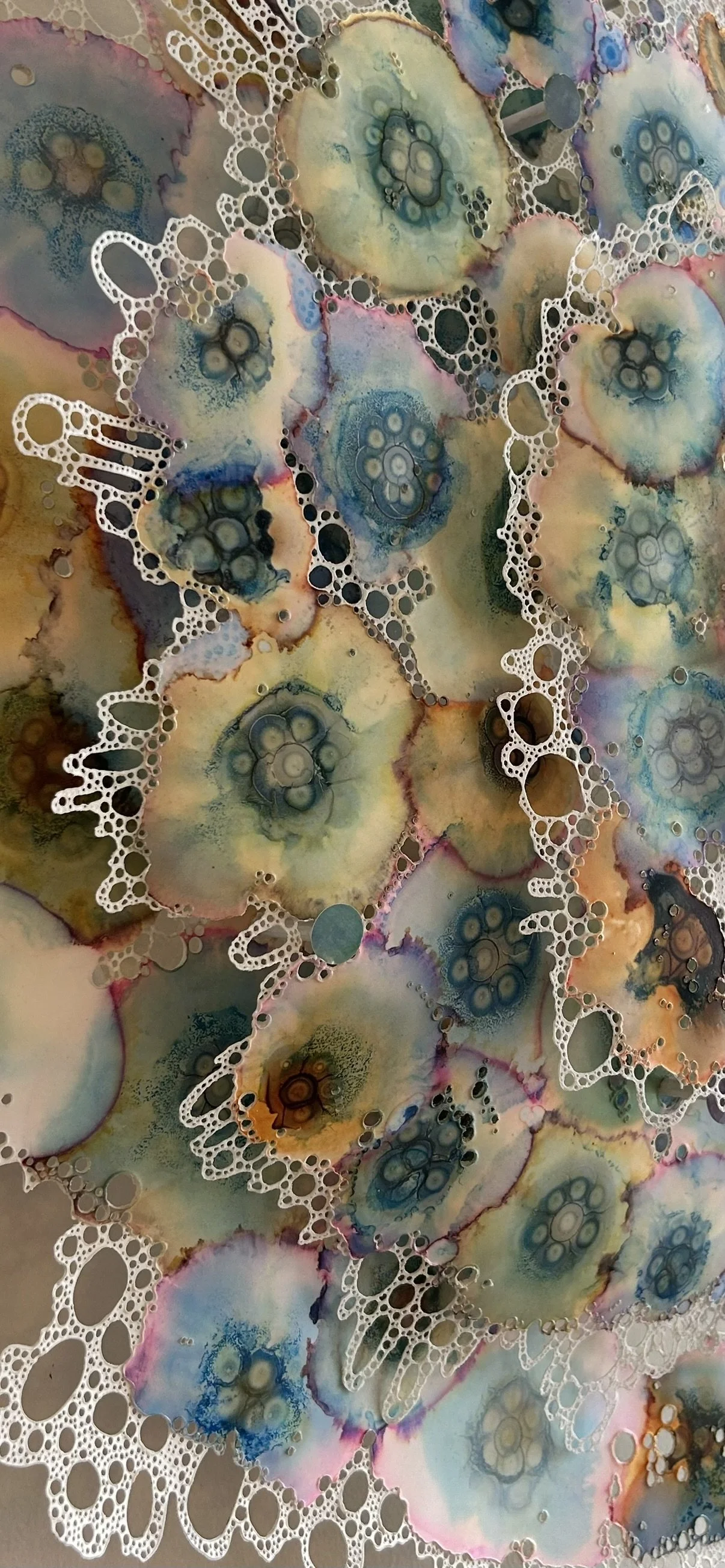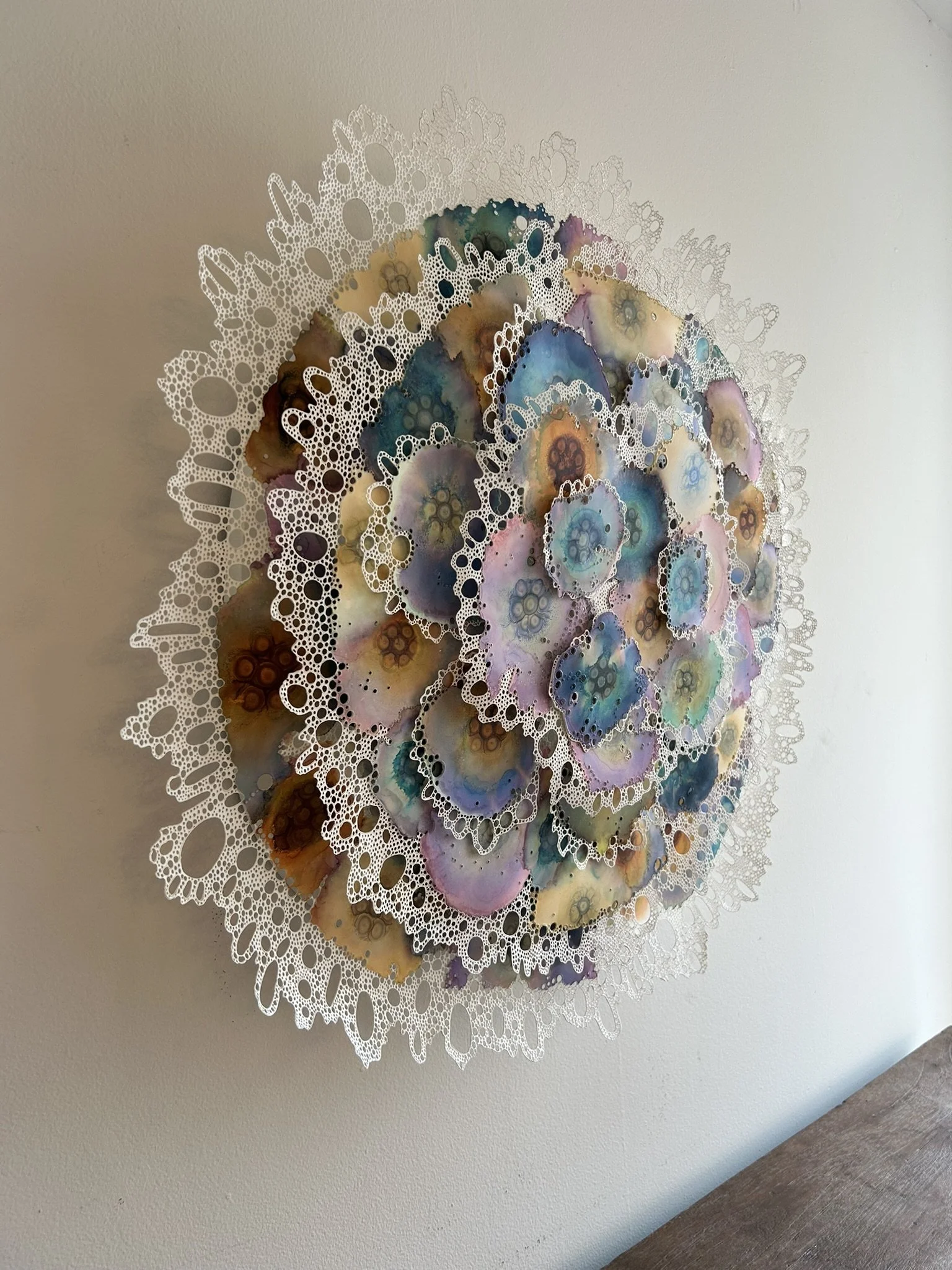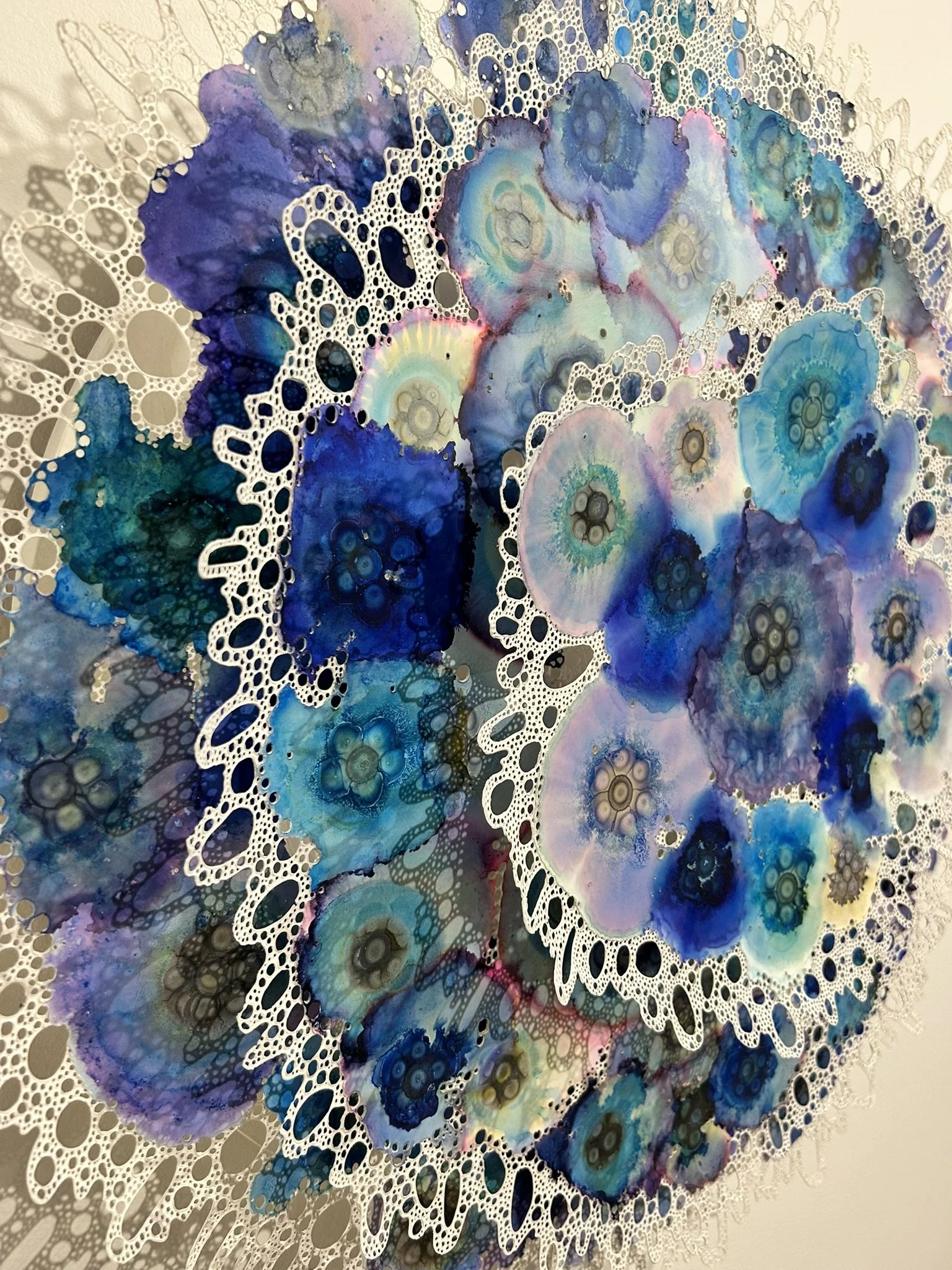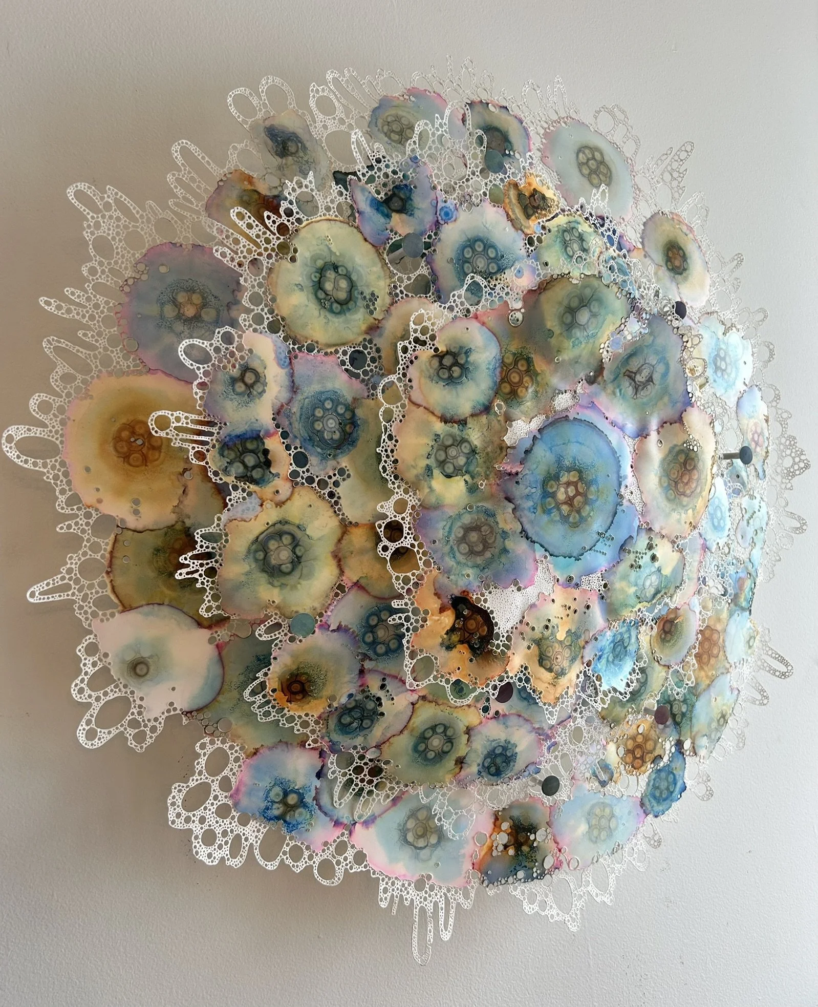Ink dripped and painted on synthetic paper - Hand soldered and mounted on panel in 3D sculpture, 2025